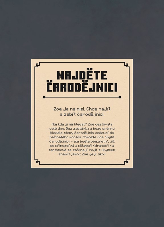 Pozor, kolem se plíží creeper a další podivní mobové! Vydejte se na pomoc pěti průzkumníkům, kteří loví nepolapitelné moby. Lov se jim však příliš nedaří, a tak zoufale potřebují vaši pomoc. Dokážete splnit jejich úkol a najít všechny moby?