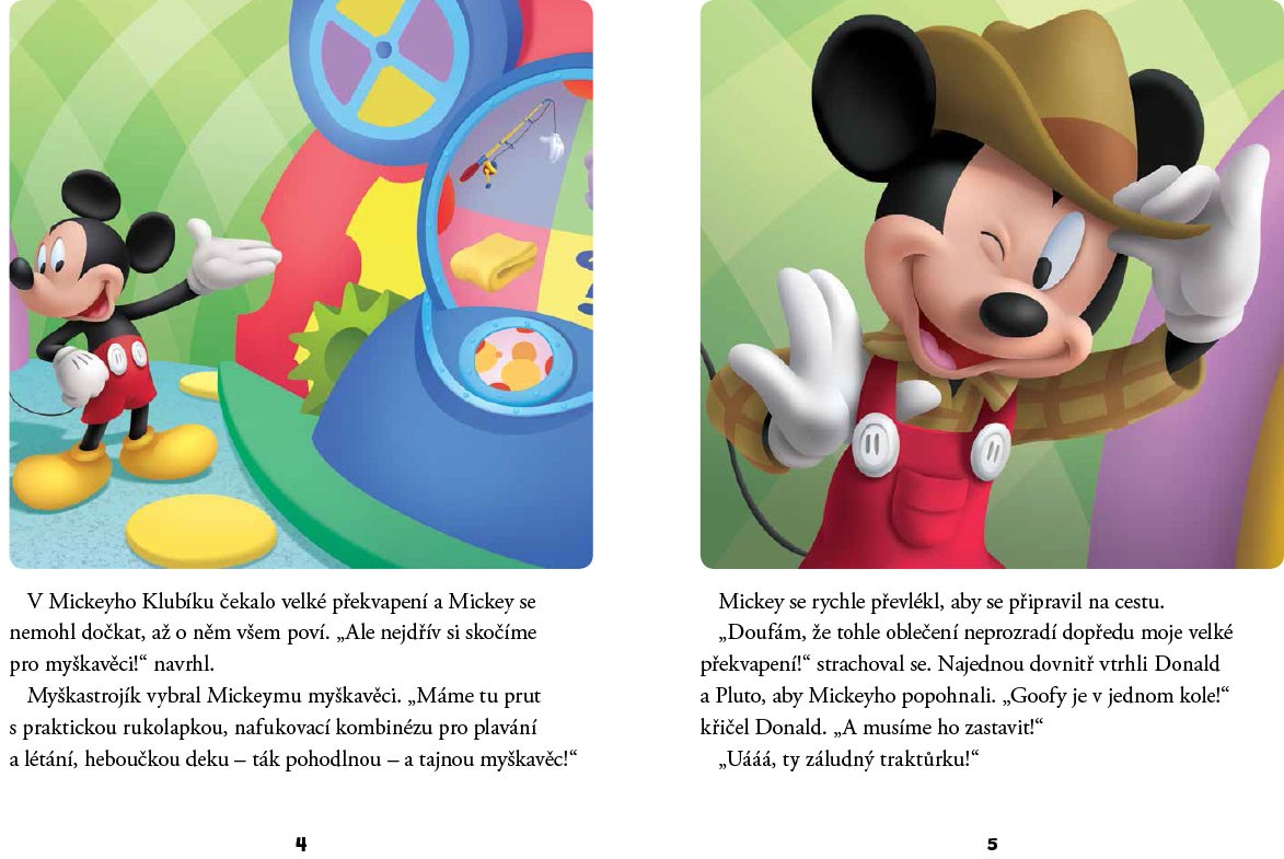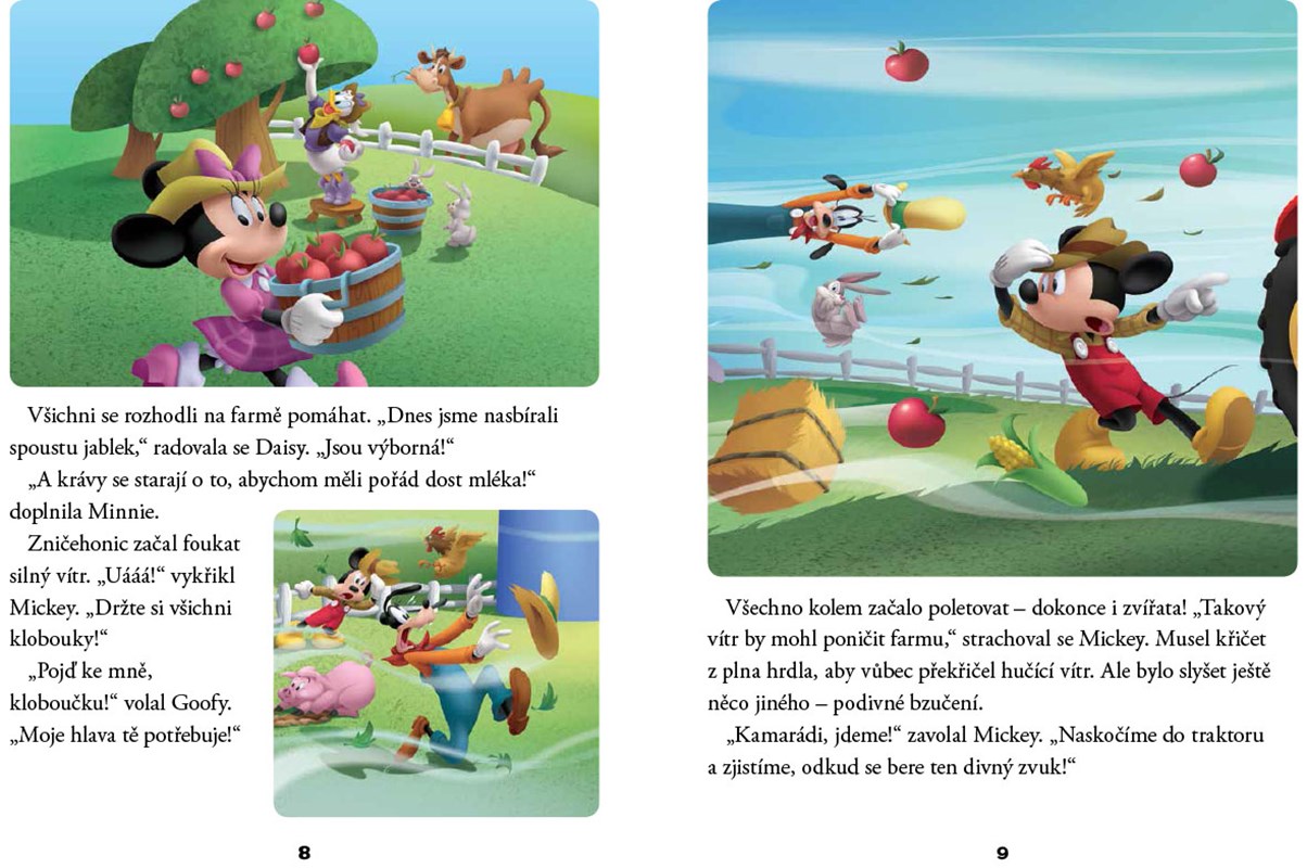 které si můžete přečíst před spaním. S Mickeym se vydáte na Donaldovu farmu, navštívíte butik myšky Minnie, setkáte se s doktorkou Daisy a pomůžete Minnie a jejím kamarádům s pečením sušenek na sušenkový trh.