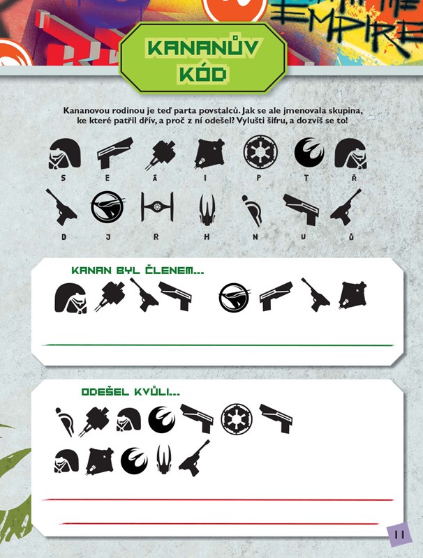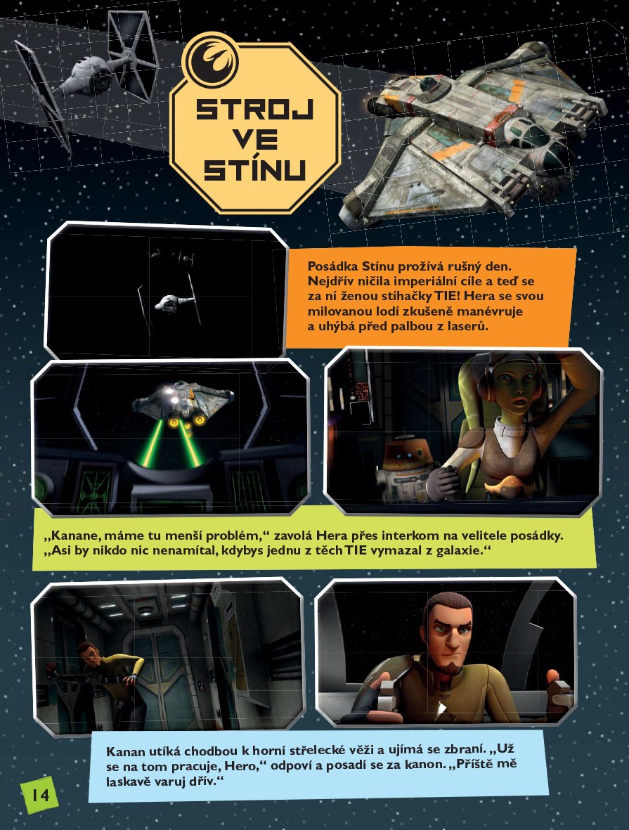 Republika je svržena a galaxii nyní vládne brutální Impérium. Nová naděje v podobě Luka Skywalkera je stále ještě v nedohlednu, ale v galaxii se už formují první skupiny povstalců. Jedním z nich je loď Stín a skupina Kanana Jarruse, která se představí právě v této knize plné příběhů, rébusů a hádanek.