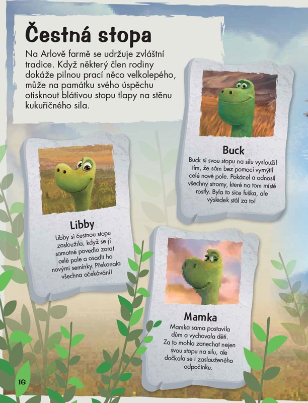 Vydejte se s dinosaurem Arlem a jeho lidským kamarádem Špuntem na dobrodružnou cestu v tomto úžasném obrazovém průvodci k filmu Disney Pixar Hodný dinosaurus. Společně překonejte strach a naučte se, jak přežít v divočině a zanechat po stopu pro další generace. Vstupte do světa tyranosaurů, pterodaktylů a dalších roztodivných druhů zvířat a objevte všechny zázraky přírody.