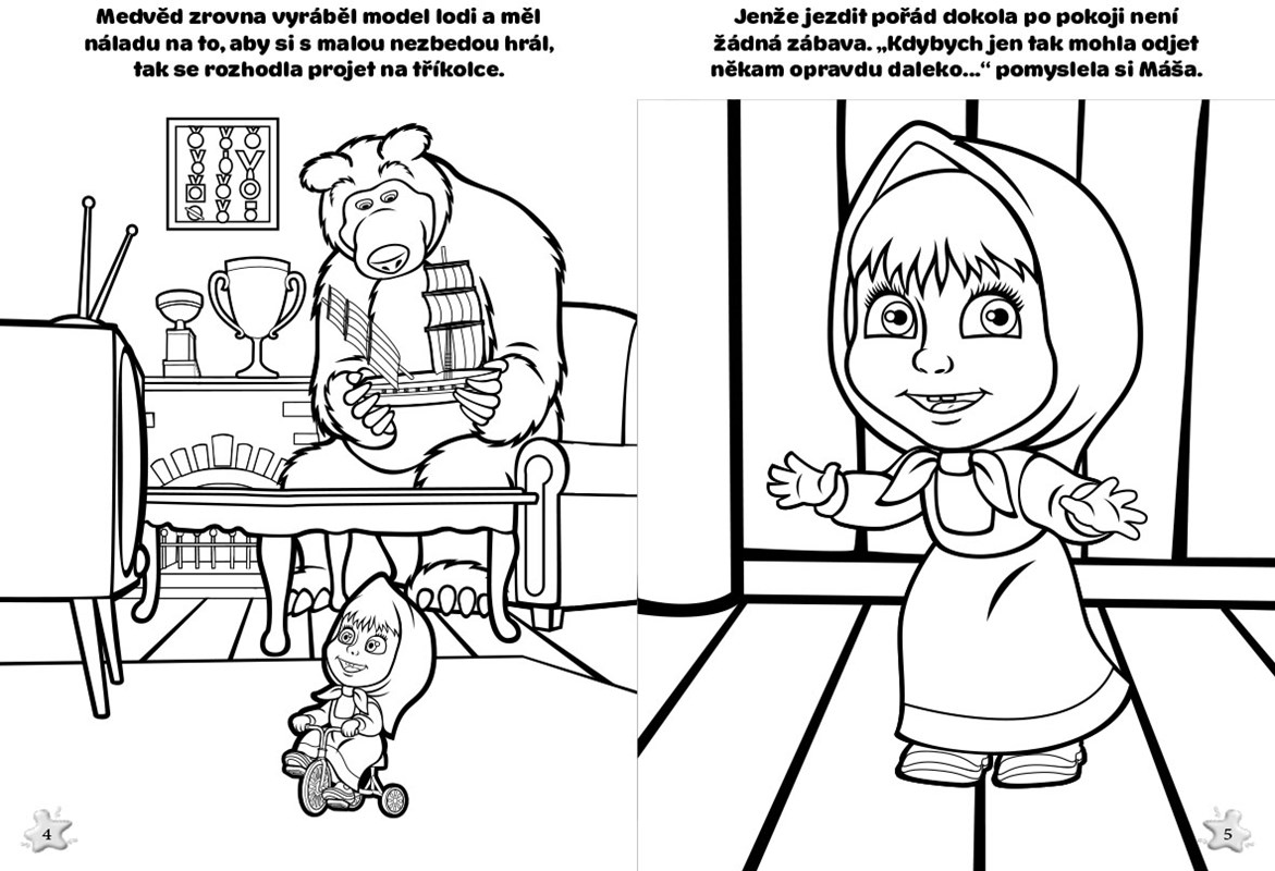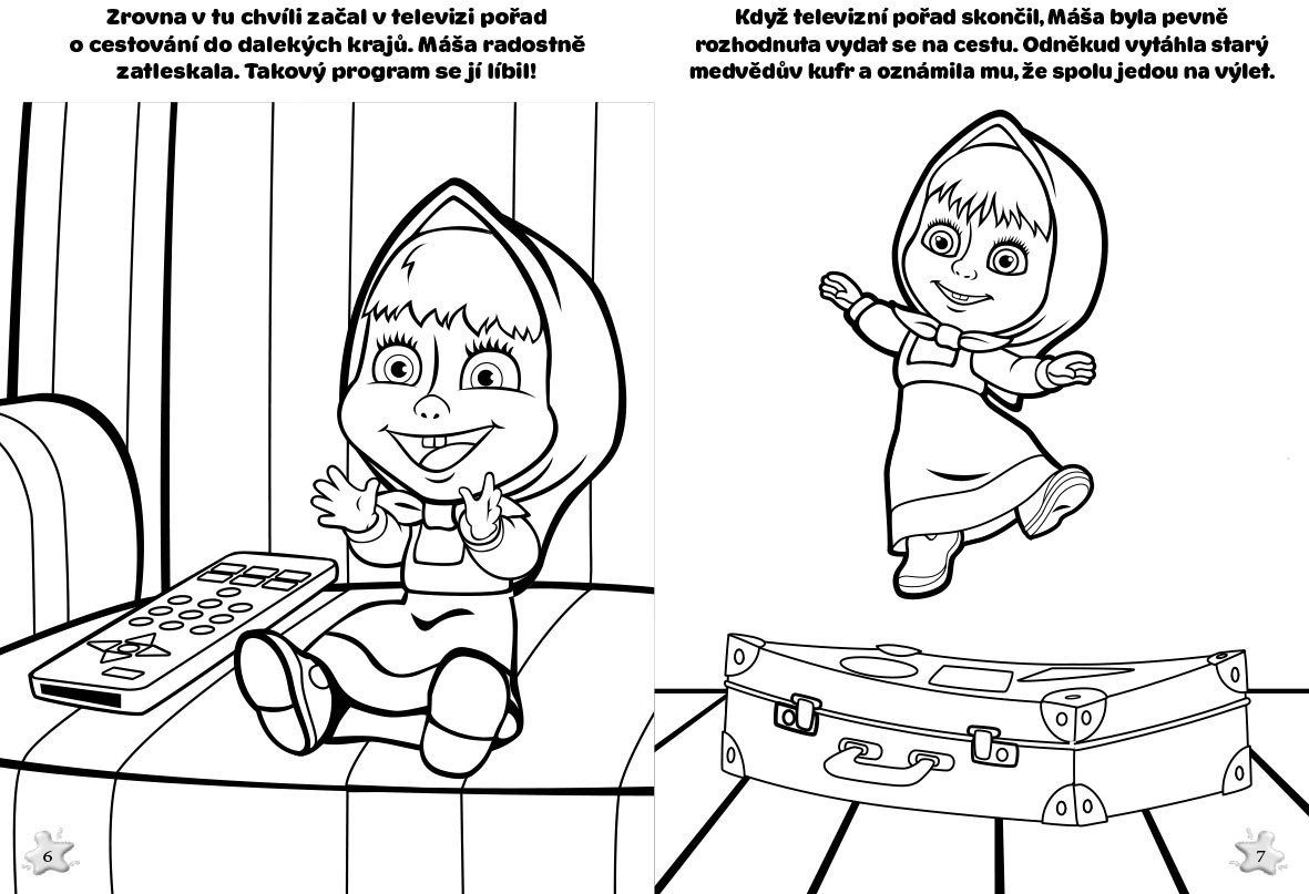 Znovu vás vítá uličnice Máša a její kamarád medvěd. Přečtěte si, jak dopadla jejich výprava do dalekých krajů, a pak si své oblíbené hrdiny vybarvěte!