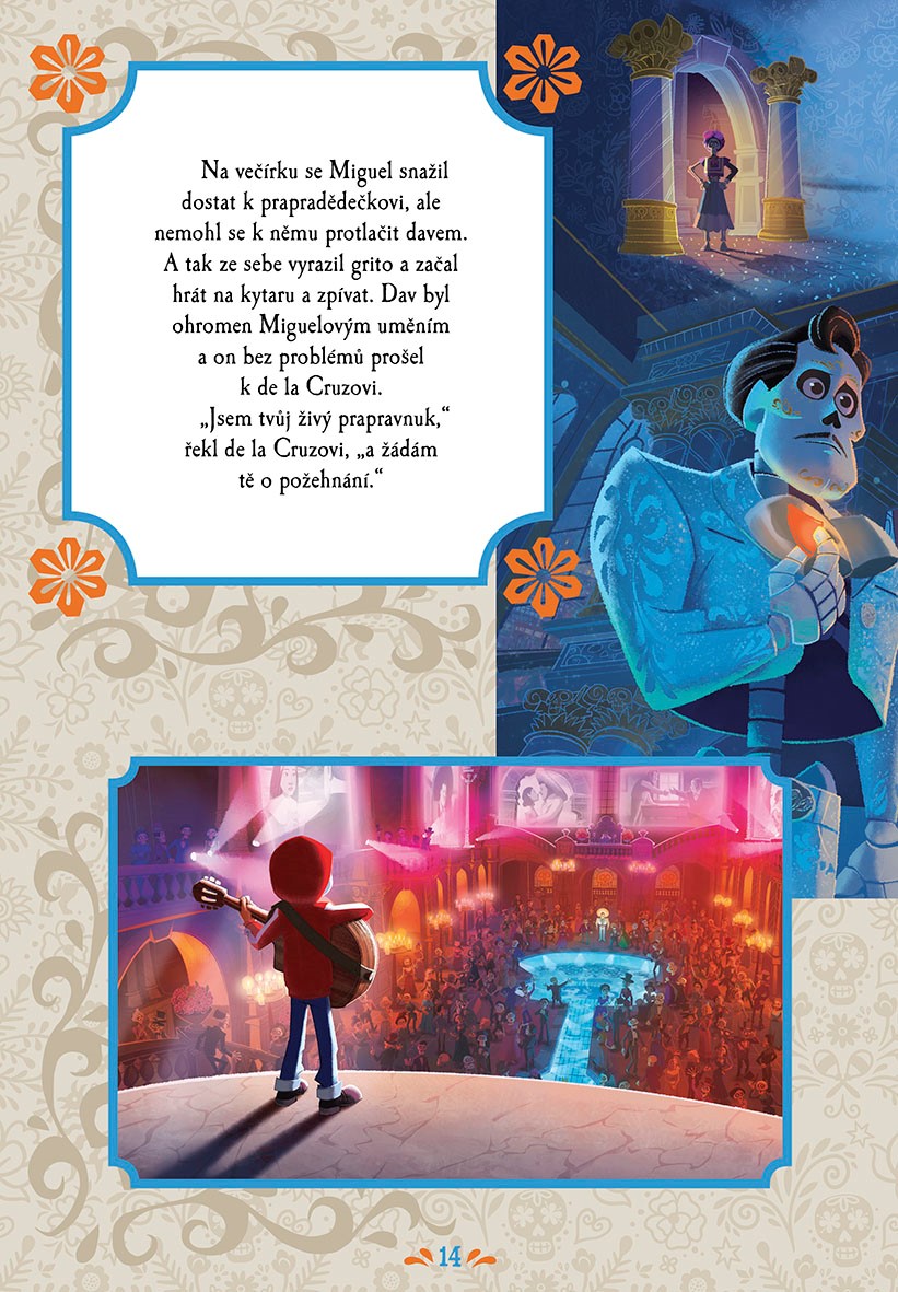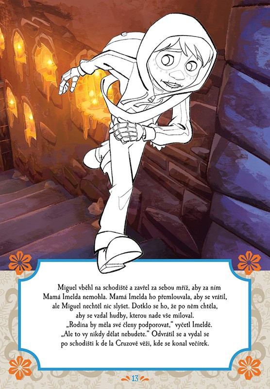Přečti si příběh o Miguelovi a Dantem a potom si svoje oblíbené hrdiny vybarvi nebo je najdi na archu samolepek a nalep je na správné místo. Zapoj svou fantazii a dobře se u toho bav!
