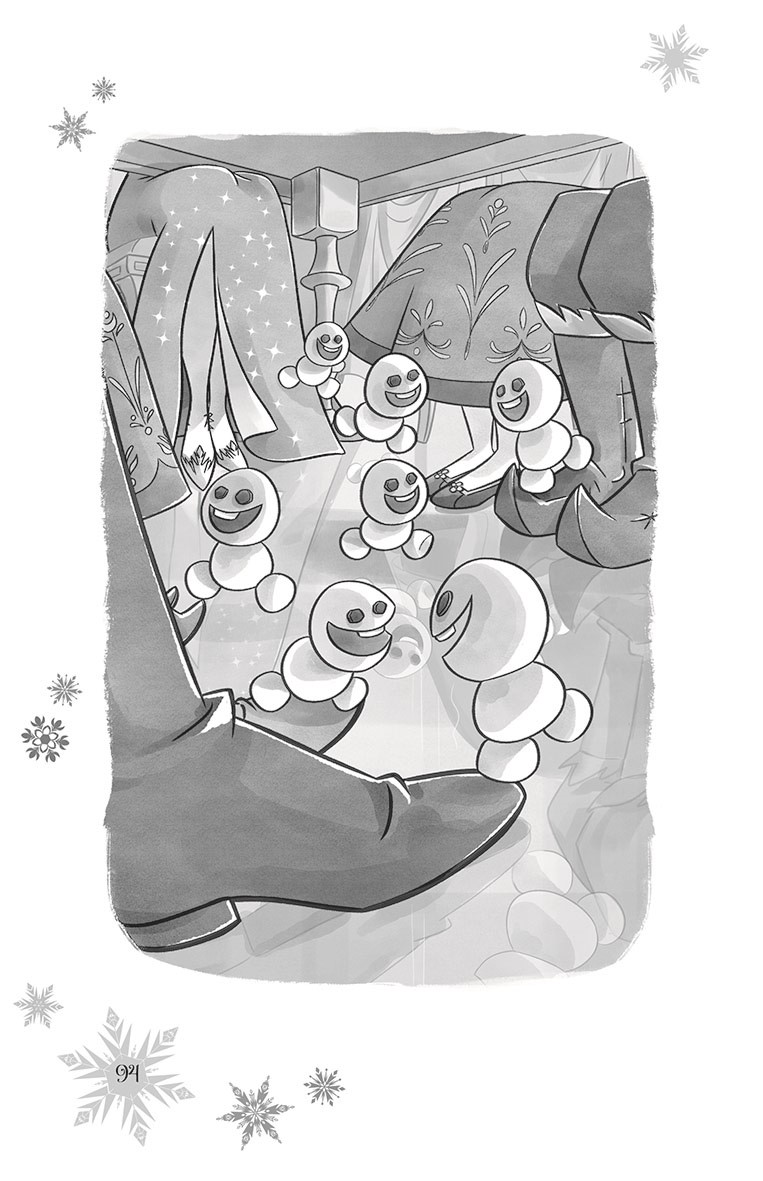 Anna s Elsou hostí v Arendelle vzácnou návštěvu a rozhodnou se ji přivítat v jedné z nejkrásnějších staveb v království – v Elsině Ledovém paláci vysoko v horách. Jak ale rozpustilým malým sněháčkům, kteří v paláci žijí, vysvětlit, co znamená etiketa a slušné chování? Annu s Elsou čeká zapeklitý úkol - zvládnout hromadu divokých sněhových rošťáků.