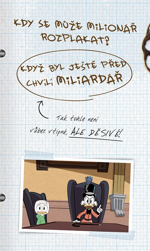 Moje vtipy MILUJE každý, zvlášť mí kámoši Kulík, Dulík, Bubík a Kačka. Ale je tu jeden kačer, kterého se mi ještě nikdy nepovedlo rozesmát, a to je můj šéf, pan Es. Přesto jsem pevně odhodlaný, že i jeho rozesměju. S trochou pomoci od kamarádů se mi to určitě povede!