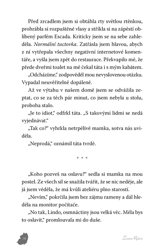 Slavná a bohatá. Taková by chtěla být každá osmnáctiletá holka. Až na Lindu, které sláva i bohatství spadly do klína, aniž by o ně stála. Izolovaná od zážitků svých vrstevníků si Linda neustále dává pozor na to, co řekne nebo udělá, ze strachu, kdo by ji mohl vyfotit a co by se o sobě zase dočetla na internetu. Jako by žila v kleci. Sice zlaté, ale pořád kleci. Klíč od ní by mohl mít fotograf David, který se do Lindina života probojuje navzdory nenávisti, která mezi jejich rodinami panuje. Teprve s Davidem začíná Linda opravdu žít. Čím více se však otevírá světu, tím snazším a lákavějším úlovkem je pro všudypřítomné objektivy novinářů. Odolá její láska neustálým výmyslům a spekulacím? A co když fakt, že ji paparazzi sledují na každém kroku, není jen náhoda?