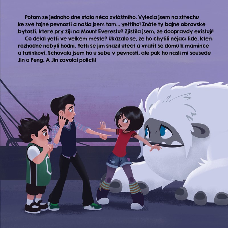 Yi je obyčejná dívka z města, která žije docela obyčejný život. Jednoho dne ale na střeše domu, kde bydlí, objeví vyděšeného malého yettiho. Najednou ji čeká neobyčejné dobrodružství: musí yettimu pomoct dostat se domů! Jenže yettiho domov je v Himálajích tisíce kilometrů daleko. Před nimi je dlouhá cesta… taková, na které oba poznají, co vlastně znamená domov.