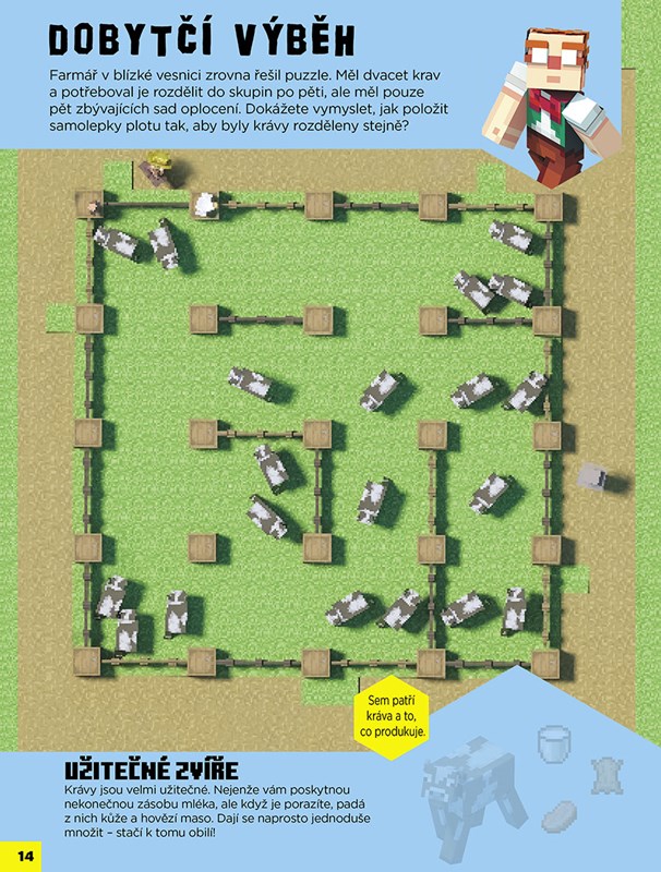 Stejně jako celý svět Minecraftu je i tato oficiální kniha plná malých i velkých tvorů z různých biomů. Naučíte se sestavit karavany lam, vytvářet různobarevné ovečky, pomáhat výstřednímu Montymu přepravit slepice a lišky přes řeku, starat se o želvy nebo plavat s delfíny. S tolika aktivitami a víc než 500 úžasnými samolepkami si užijete spoustu zábavy!