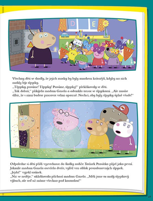 Užijte si pořádnou porci zábavy s prasátkem Peppou! Pusťte se do řešení veselých úkolů a bavte se příhodami svých oblíbených hrdinů. S knížkou plnou příběhů, doplňovaček, hádanek, omalovánek a her se nebudete nudit ani chviličku.