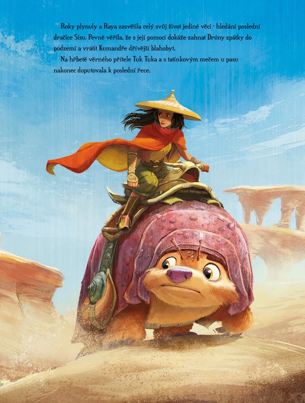 Seznamte se s osamělou válečnicí Rayou z bájné říše Kumandra. Při hledání posledního draka se Raya spojí s partou přátelských podivínů a společně navrátí do Kumandry mír a jednotu. Příběh vypráví o soudržnosti a naději a ilustrace jsou inspirované nádhernou a pestrou kulturou jihovýchodní Asie.