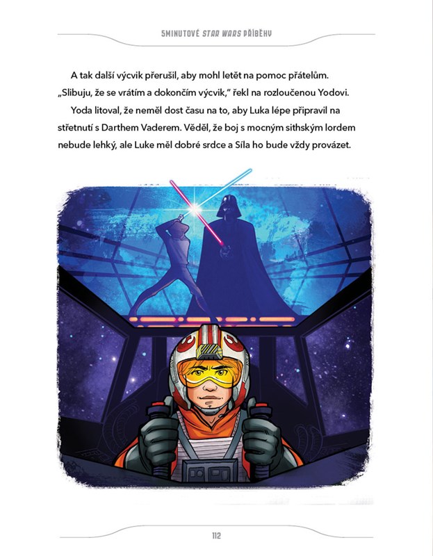 Vyrazte hyperprostorem vstříc napínavým příběhům Star Wars! Seznamte se s rytíři Jedi Obi-Wanem Kenobim a Anakinem Skywalkerem, mistrem Yodou, Lukem Skywalkerem, princeznou Leiou, Hanem Solem, Chewbaccou, Rey a droidy R2 a 3PO, kteří statečně bojují proti obávaným Sithům hraběti Dookuovi a Darthu Vaderovi i jejich spojencům a tajným zbraním. Každý z příběhů přečtete za pět minut a přitom stačíte prožít velké galaktické dobrodružství!