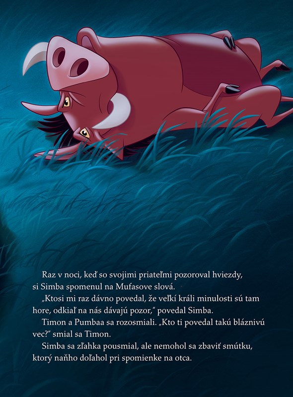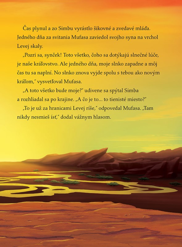 Vydajte sa do vnútrozemia Afriky, do savany pod Levou skalou, kde sa zhromaždili všetky zvieratá, aby oslávili narodenie malého levíčaťa Simbu, budúceho kráľa. Z potomka kráľa Mufasu a jeho družky Sarabi sa raduje celá ríša – teda až Mufasovho žiarlivého brata, zlého a pomstychtivého Scara. Ten sa nemôže zmieriť s tým, že dedičom trónu sa stal Simba, a splieta plány, ako získať moc pre seba. S pomocou troch zlomyseľných hyen začína uskutočňovať svoj strašný plán…